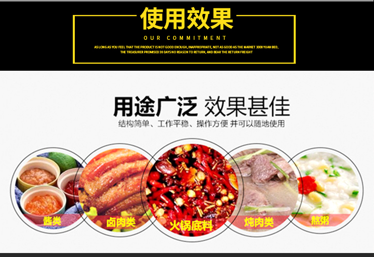 適應于各種高粘度醬料的混合攪拌加熱蒸煮炒制:焙烤餡料炒制業(果醬、蓮蓉、豆沙、水果蓉、蜜餞、棗泥)、肉制品熟食加工業(鹵味、肉醬、牛肉醬、海鮮醬)、調味品業(火鍋底料、方便面醬料、香其醬)、糖果業(果醬、糖料)、蔬菜玉米加工業(香菇醬、辣椒醬)、酒店用品及快餐(食堂熬湯、炒菜、燉肉、熬粥)等食品加工業以及日用化工、制藥等行業的攪拌混合。